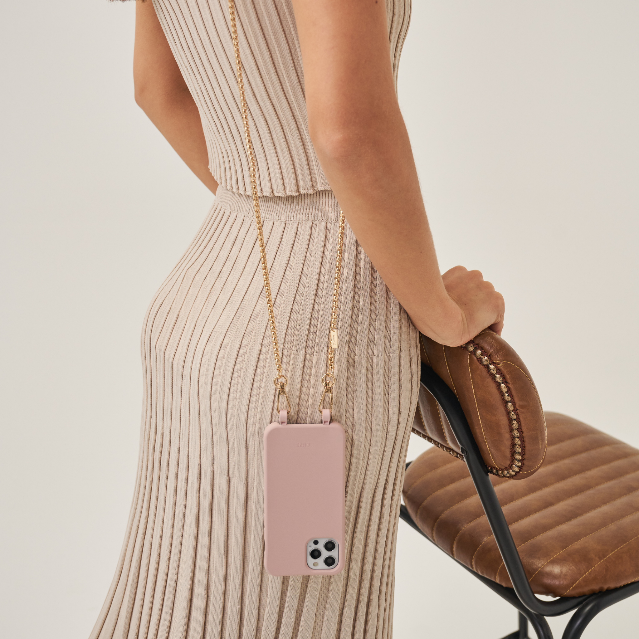 Dusty Pink Phone Case + Gaia Gold-Plated Chain
