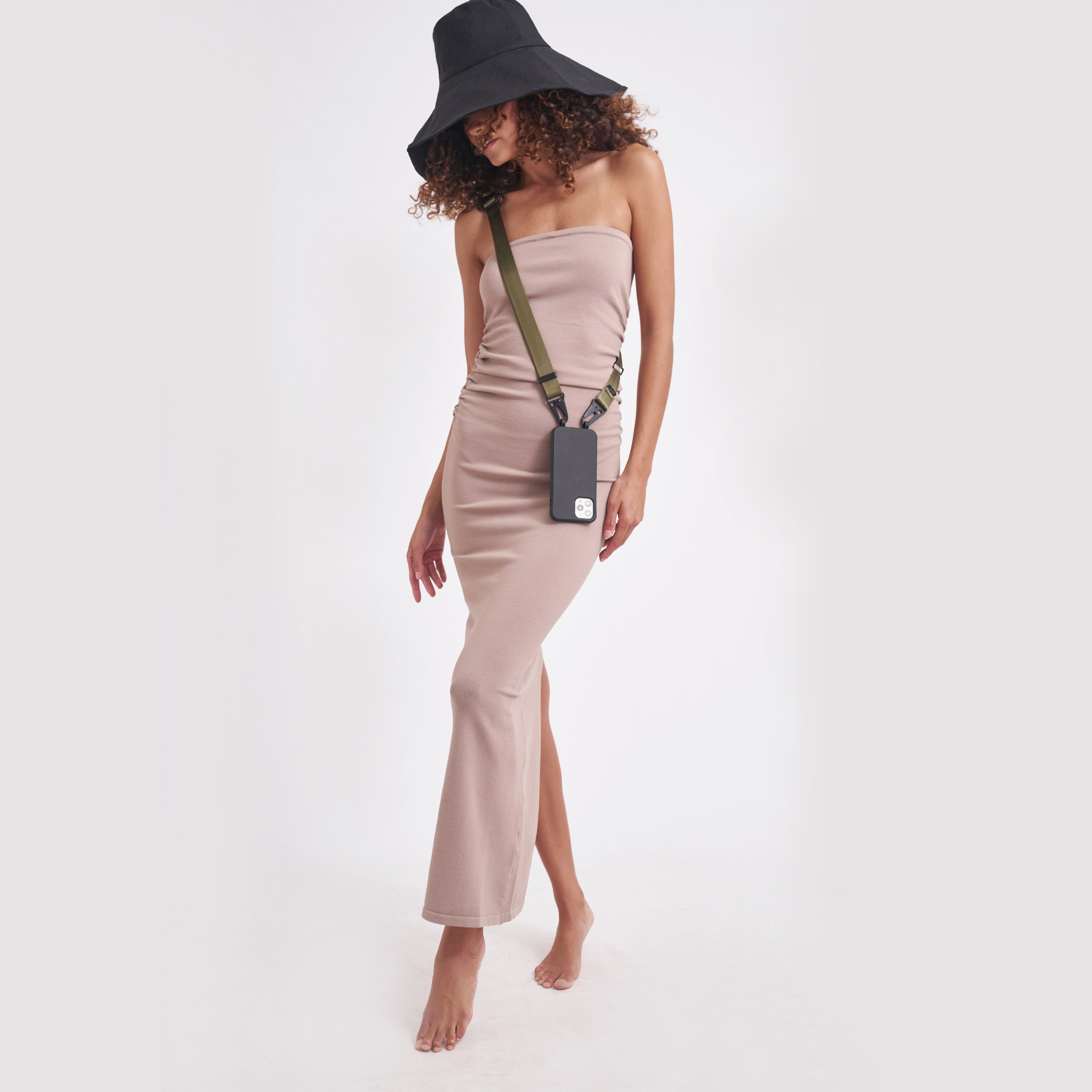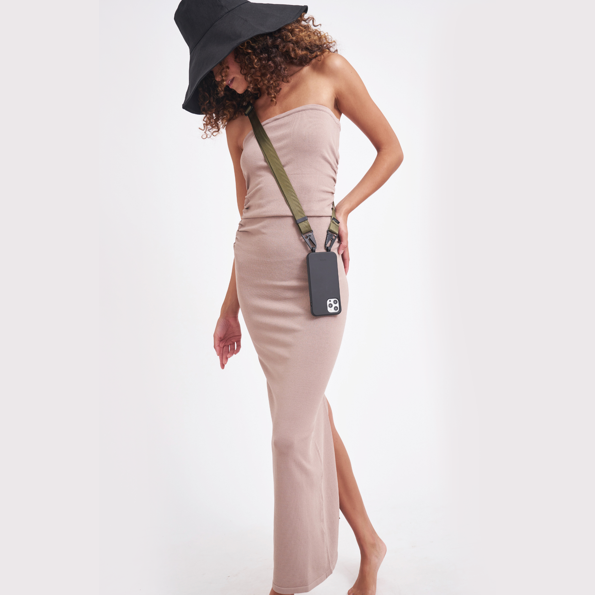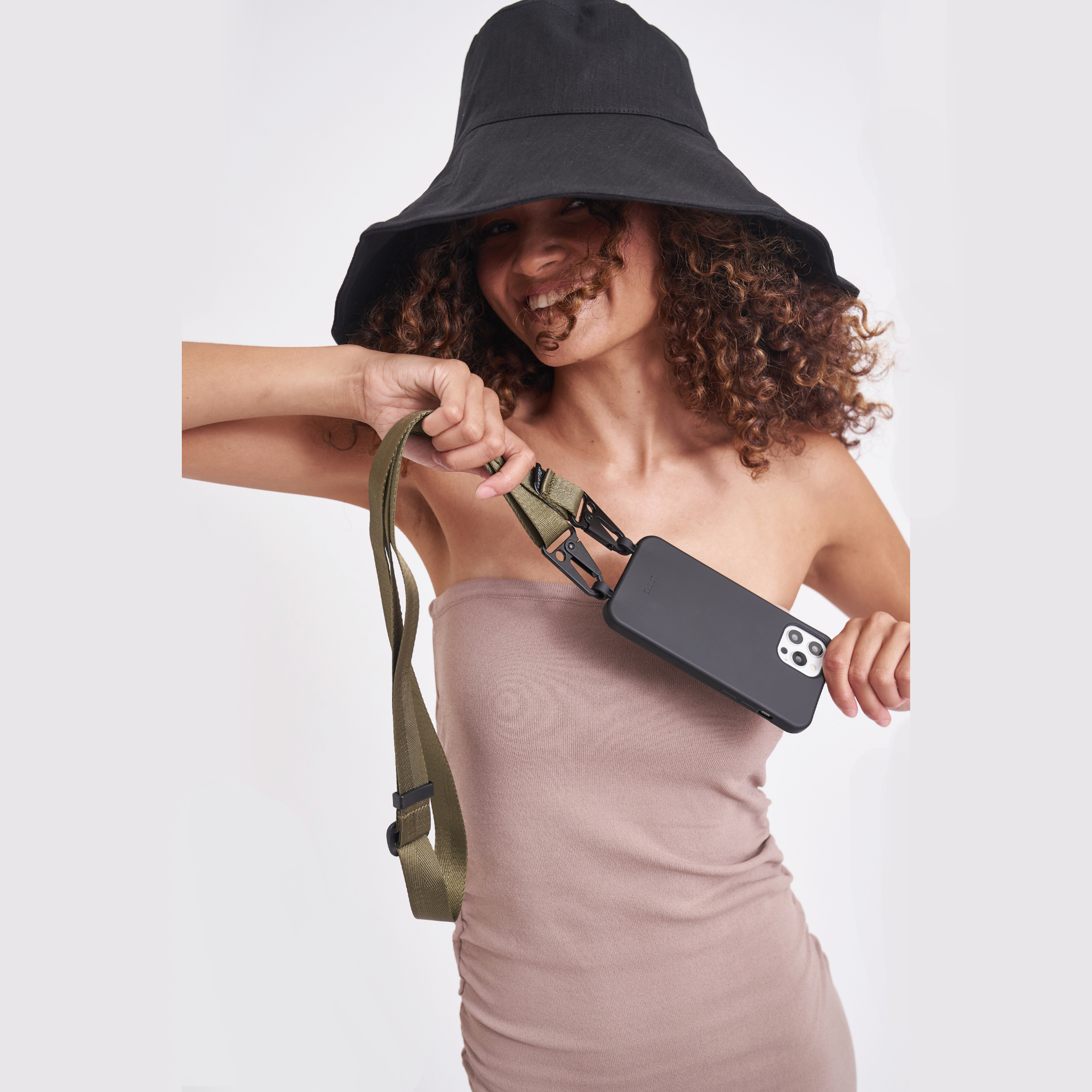 Black Phone Case + Olive Crossbody Lanyard