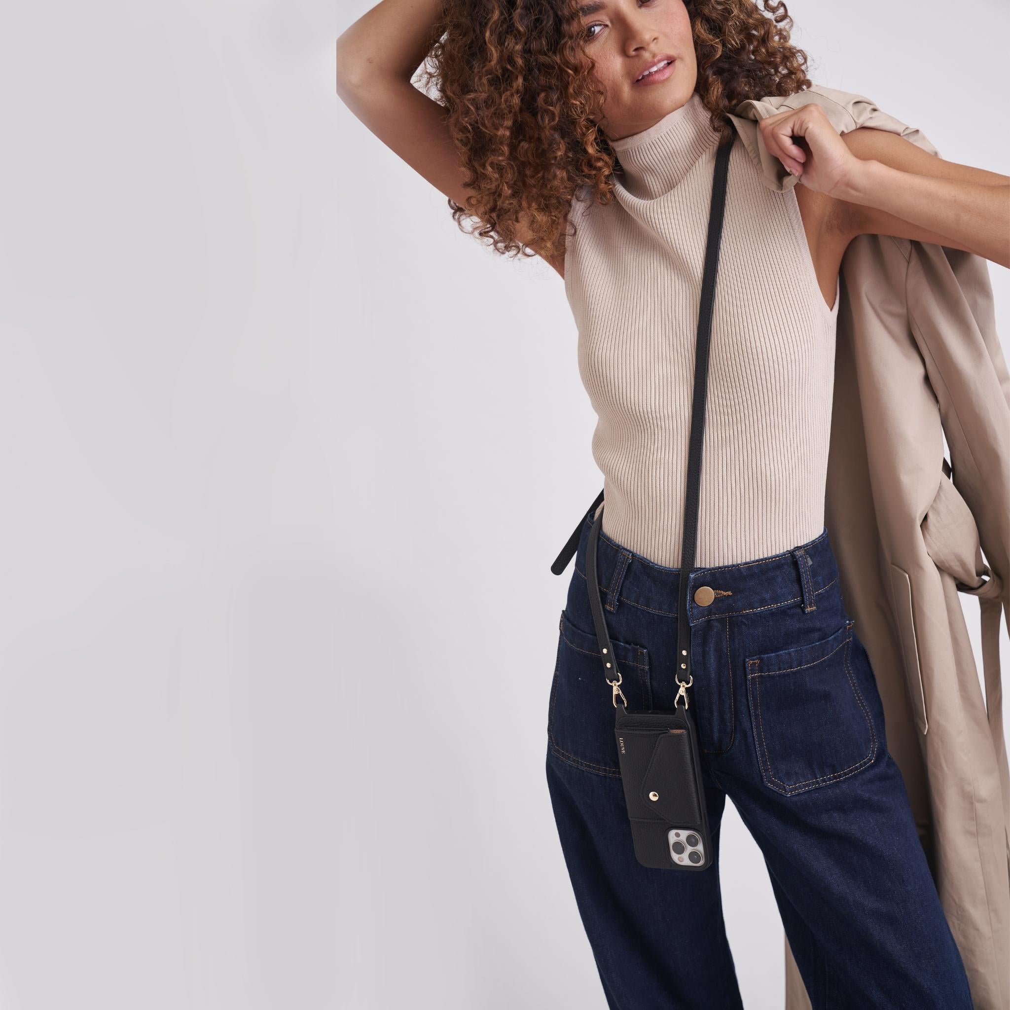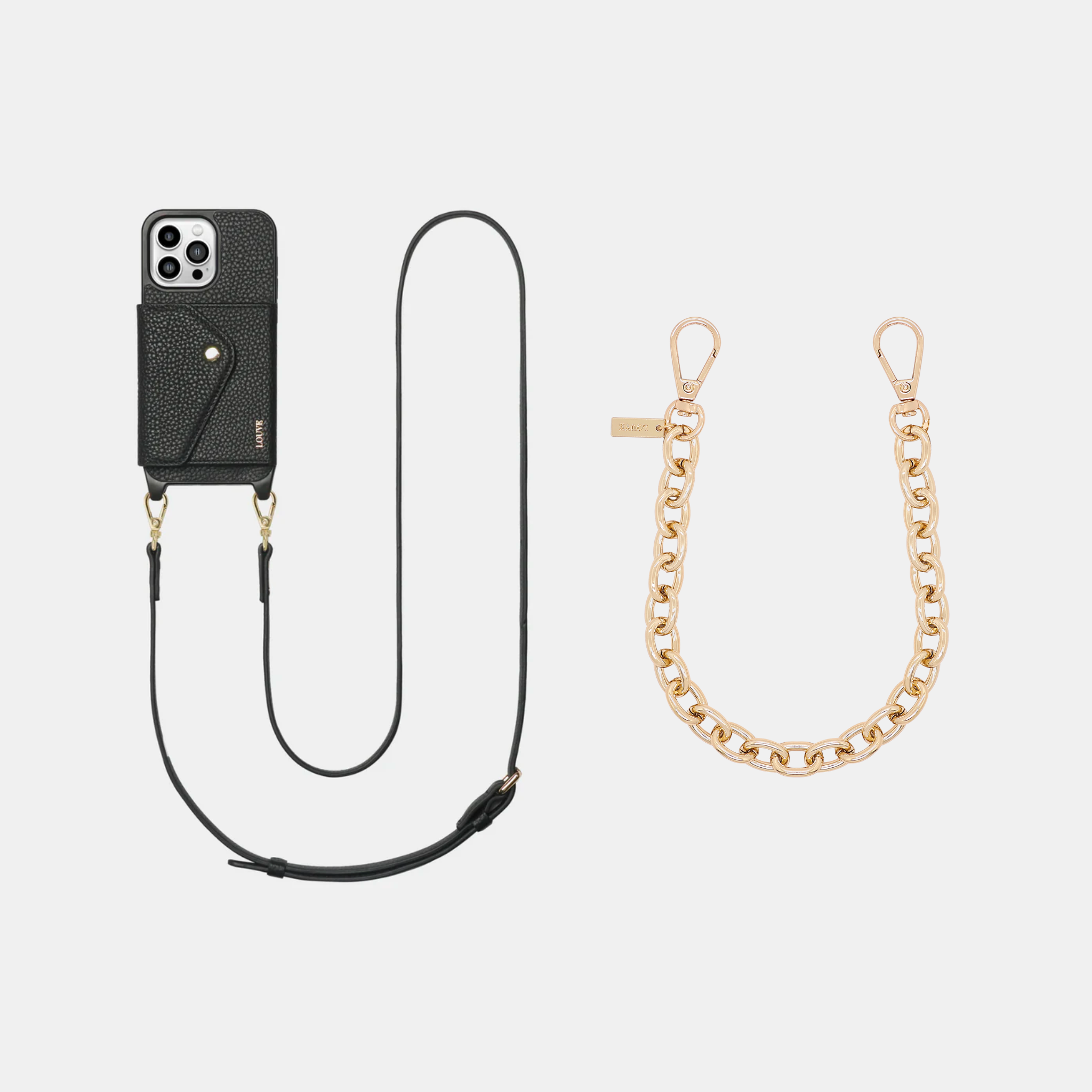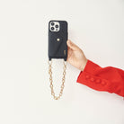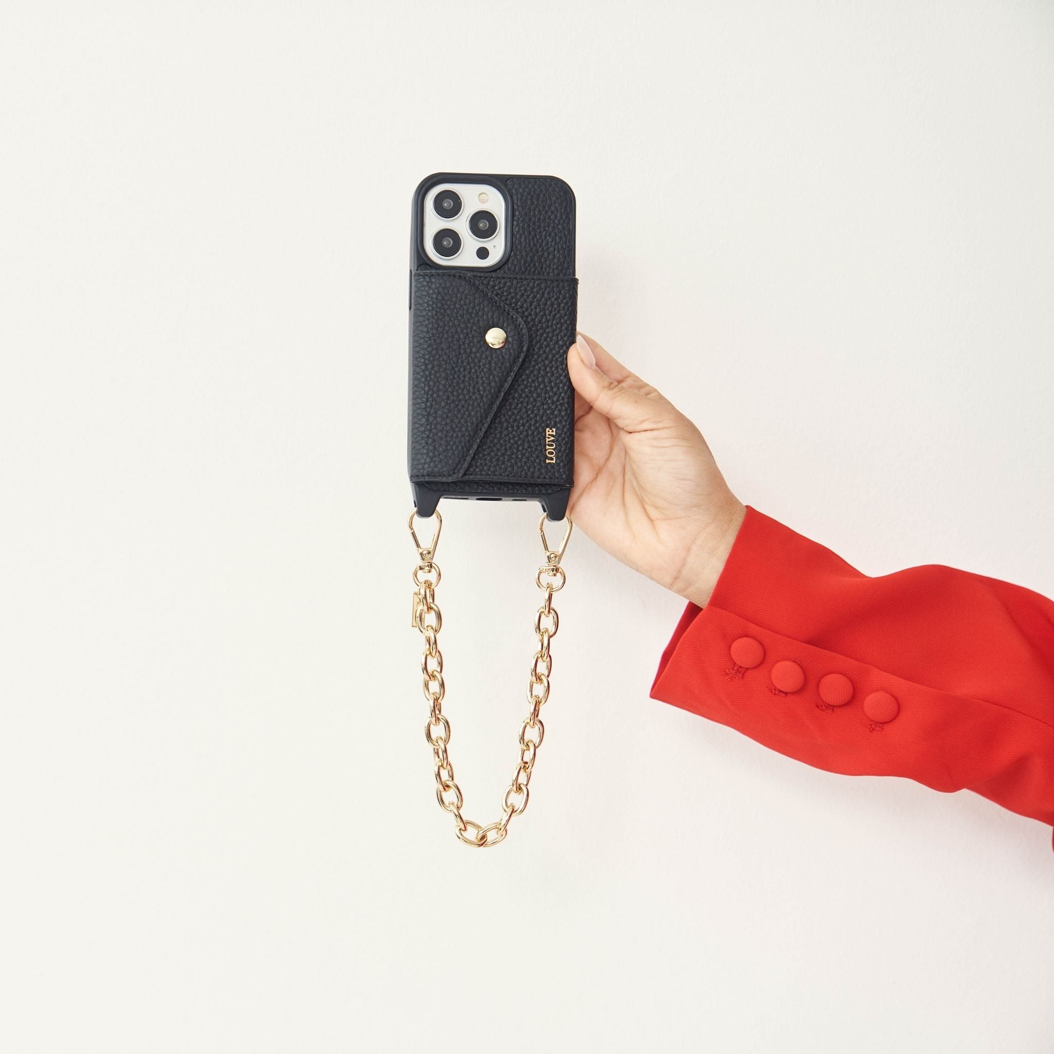- This phone case & strap style has not been specially designed to layer with other straps/chains - We recommended using the matching leather crossbody strap interchangeably with your favourite chain from our collection!