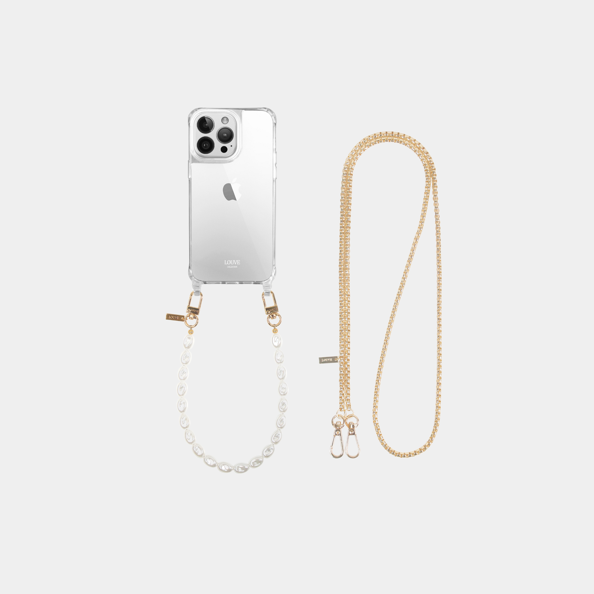 Clear Phone Case + Gaia Gold-Plated Chain + Pearl Wristlet