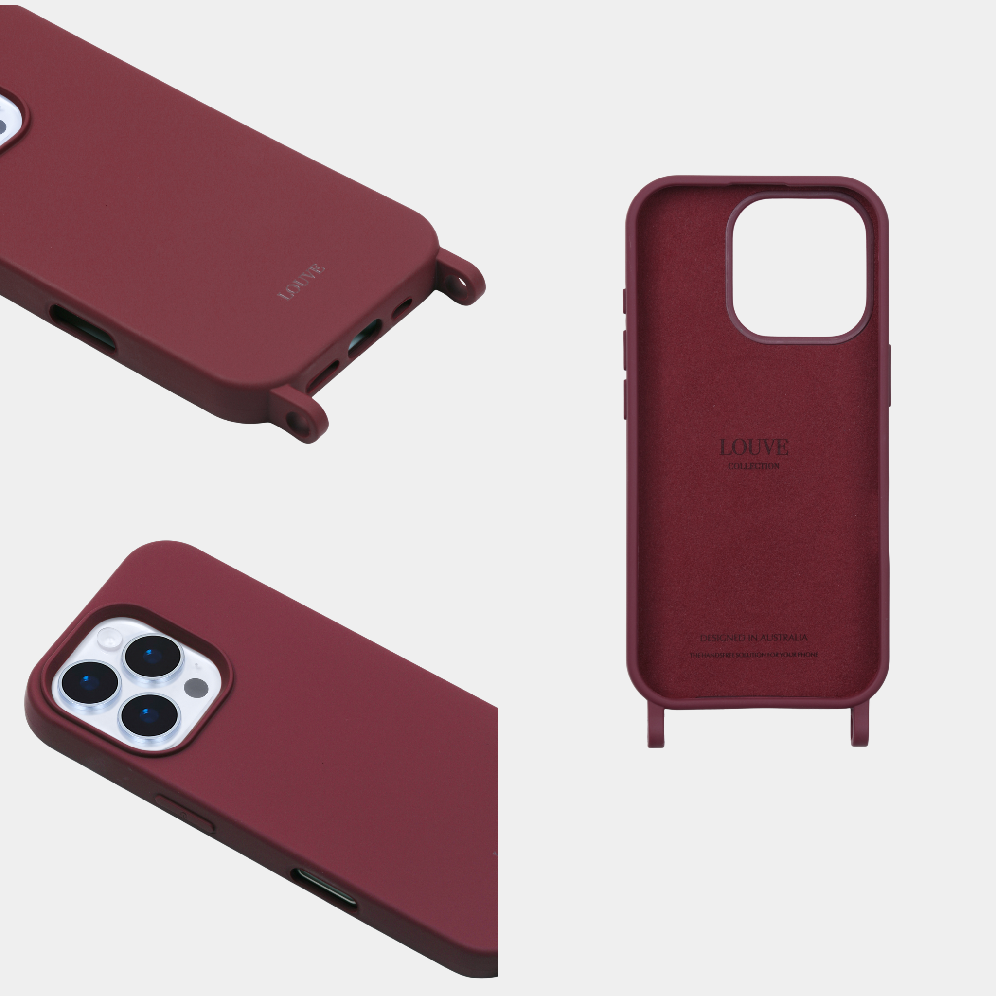 Protect your phone in style with our elegant Burgundy anti-shock case. Crafted with a soft, smooth finish and a minimalist design, it features the LOUVE brand name subtly placed at the lower back. Built-in eyelets make it easy to attach or remove a phone strap, instantly transforming your device into a chic, functional accessory. Pair this case with any of our phone straps, mix and match colours and styles to suit your mood. With this Burgundy beauty, your phone has never looked more stylish.