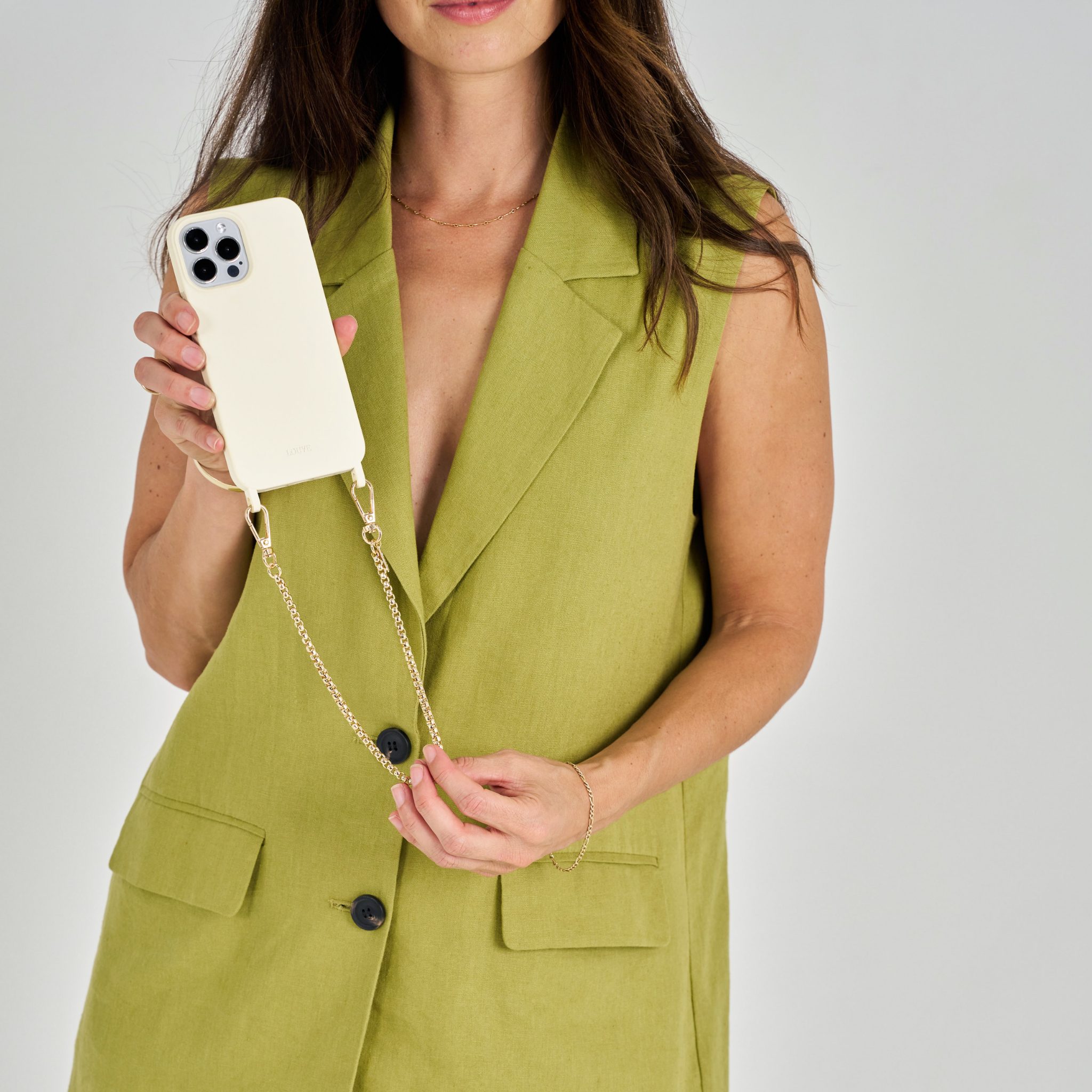 The classic and sleek crossbody phone cases are functional & stylish at the same time. With the added gold-plated crossbody chain, your smartphone is transformed into a timeless fashion accessory.