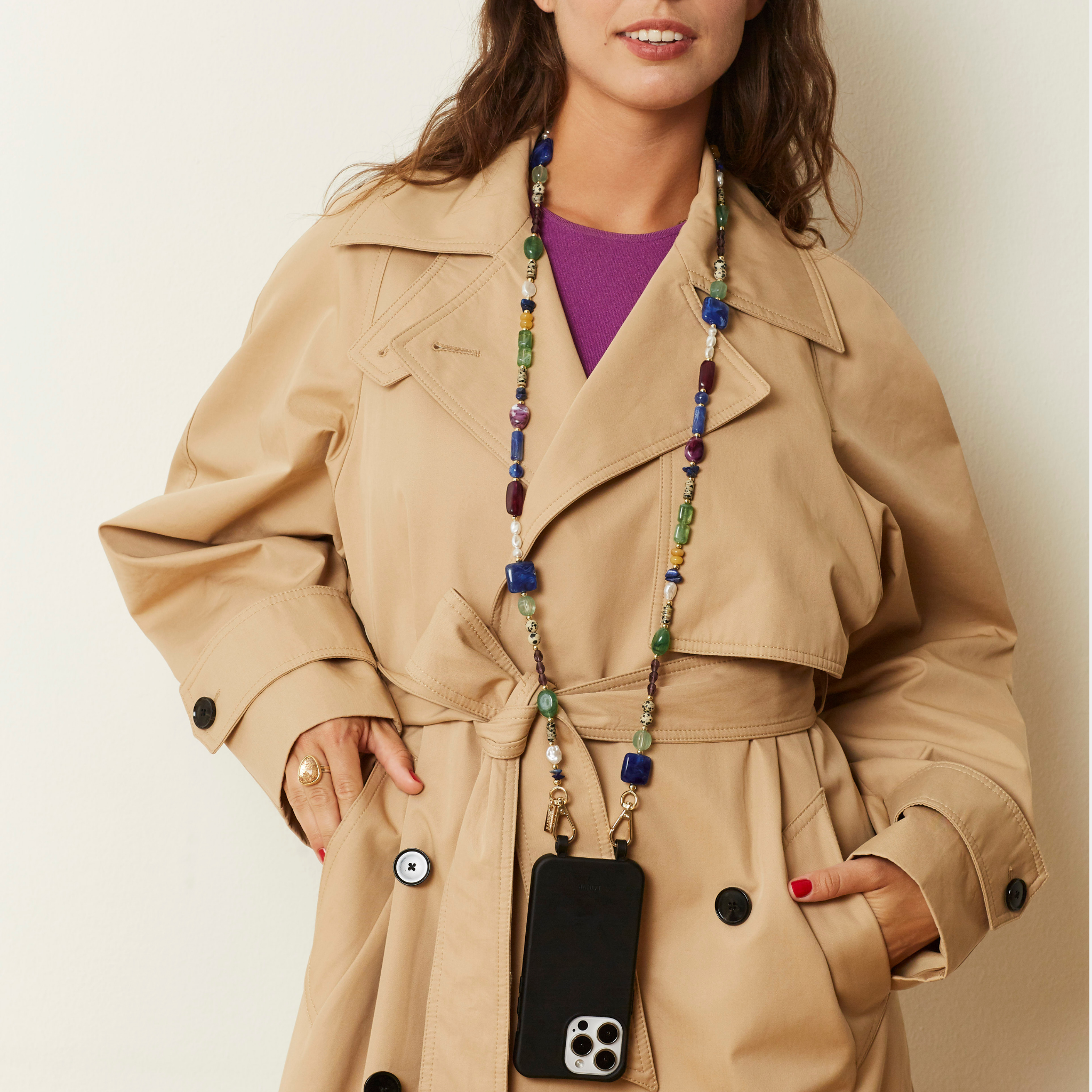 The classic and sleek crossbody phone cases are functional & stylish at the same time. With the added gold-plated crossbody chain, your smartphone is transformed into a timeless fashion accessory.